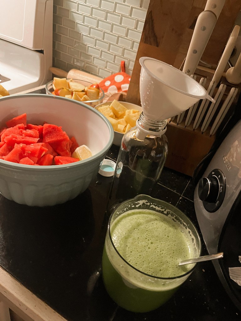 Excited for a little nutrient boost and making sure none of my produce went to waste. b/c realistically? There’s no way I would’ve eaten half of this before it went bad. Juicing lets me get it in, in a way that feels nourishing, not overwhelming.